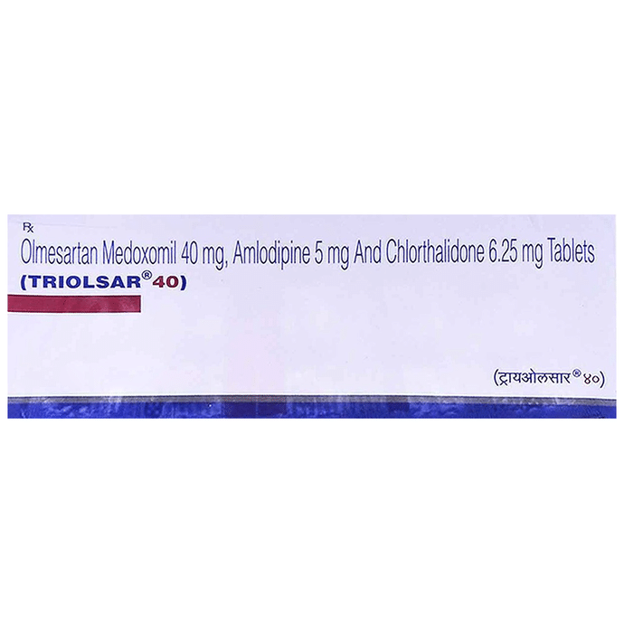 Triolsar 40 Tablet is a combination of medicines used to treat hypertension (high blood pressure) when a single medication is not effective. It helps to lower high blood pressure thus reduces chances of future heart attack and stroke. Triolsar 40 Tablet should be taken with or without food. The dose will depend on your condition and how you respond to the medicine. Try to take it at the same time each day. It is important to keep taking this medicine until your doctor tells you not to. It contains a diuretic (water pill) and will make you urinate more so, it is best to avoid taking this medicine within four hours of going to bed. Use this medicine regularly to get the most benefit from it even if you feel well. High blood pressure does not usually have symptoms and if you stop taking it your risk of heart attack or stroke may increase. The most common side effects of this medicine include ankle swelling, headache, dizziness, tiredness, and taste change. Consult your doctor If any of these bother you, or get worse, or won't go away. Drink plenty of fluids while taking medicine to overcome muscle weakness, dry mouth, and extreme thirst. Before taking it, let your doctor know if you have any liver or kidney problems. Pregnant or breastfeeding women should also consult their doctor for advice before taking this medicine. You also need to tell your doctor what other medicines you are taking especially those used to treat high blood pressure or heart conditions. You should have your blood pressure, kidney function, level of electrolytes, and blood sugar level checked regularly to make sure that this medicine is working properly.