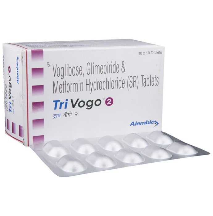 Trivogo 2 Tablet SR belongs to a category of medicines known as anti-diabetic drugs. It is a combination of medicines used to treat type 2 diabetes mellitus in adults. It helps control blood sugar levels in people with diabetes. Trivogo 2 Tablet SR should be taken with food. Take it regularly at the same time each day to get the most benefit. Your doctor will decide what dose is best for you and this may change from time to time according to how it is working according to your blood sugar levels. Keep taking this medicine, even if you feel well or your blood sugar levels are controlled. If you stop it without consulting your doctor, your blood sugar levels could rise and put you at risk of kidney damage, blindness, nerve problems and loss of limbs. Remember that it is only part of a treatment program that should also include a healthy diet, regular exercise, and weight reduction as advised by your doctor. Your lifestyle plays a big part in controlling diabetes. The most common side effect of Trivogo 2 Tablet SR is low blood glucose levels (hypoglycemia). Make sure you recognize the signs of having low blood glucose levels, such as sweating, dizziness, headache, and shaking and know how to deal with it. To prevent this, it's important to have regular meals and always carry a fast-acting source of glucose such as sugary food or fruit juice with you. Drinking alcohol can also increase your risk of low blood sugar levels and should be avoided. Other side effects that may be seen on taking this medicine include taste changes, nausea, diarrhea, stomach pain, headache, edema (swelling), blurred vision, bone fracture, and upper respiratory tract infection. Some people may find that they put on weight with this medicine. You should not take it if you have type 1 diabetes mellitus, if you have diabetic ketoacidosis (high levels of acid in your blood), or if you have severe kidney or liver disease. Before taking this medicine, tell your doctor if you have ever had heart disease. It may not be suitable. Pregnant or breastfeeding women should also consult their doctor before taking it. Your blood sugar levels should be checked regularly and your doctor may also advise blood tests to monitor your blood cell counts and liver function.