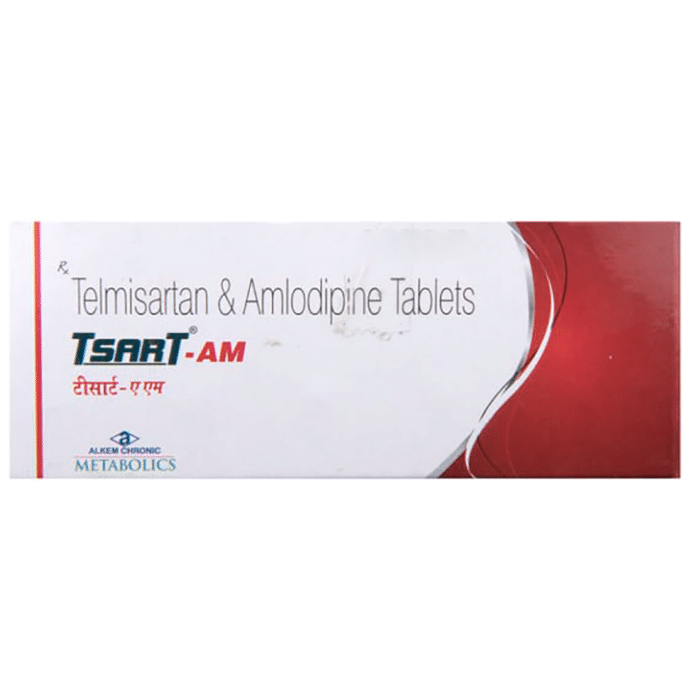 Tsart-AM Tablet contains two medicines, both of which help to control high blood pressure. It lowers the blood pressure by relaxing the blood vessels and making it easier for your heart to pump blood around your body. This will reduce your risk of having a heart attack or a stroke. Tsart-AM Tablet may be taken on an empty stomach or along with food. However, it is better to take it regularly at a fixed time each day, as prescribed by your doctor. The dose will depend on your condition and how you respond to the medicine. It’s important to keep taking this medicine even if you feel well. By lowering your blood pressure, it is reducing your risk of heart attack or stroke so do not stop taking it unless your doctor tells you to. You can help this medication work better by making a few changes to your lifestyle such as keeping active, stopping smoking, and eating a low salt and low-fat diet. The most common side effects of this medicine include swelling in your ankles or feet (edema), headache, sleepiness, dizziness, tiredness, and upset stomach. Since it may cause sleepiness and dizziness, do not drive or do anything requiring concentration until you know how it affects you. Talk to your doctor if any of the side effects bother you or will not go away. Before taking this medicine, let your doctor know if you have any kidney or liver problems or severe dehydration. Pregnant or breastfeeding women should also consult their doctor before taking it. While using this medicine, your blood pressure will need to be checked often and your kidney function may also need to be tested.