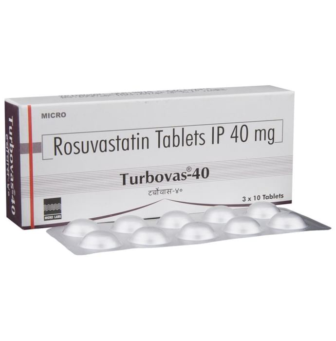 Turbovas 40 Tablet belongs to a group of medicines called statins. It is used to lower cholesterol and reduce the risk of heart disease. Cholesterol is a fatty substance that builds up in your blood vessels and causes narrowing, which may lead to a heart attack or stroke. Turbovas 40 Tablet is a widely prescribed medicine and is regarded as safe for long-term use. It can be taken with a meal or on an empty stomach. You can take it at any time of the day but try to take it at the same time each day. Most people with high cholesterol do not feel ill, but stopping your medicine may increase your cholesterol levels, making your condition worse and increasing your risk of heart disease and stroke. It is important to have your cholesterol levels checked regularly. This medicine is only one part of the treatment program which should also include a healthy diet, regular exercise, smoking cessation, moderation of alcohol intake, and weight reduction. You can eat normally while taking this medicine, but try to avoid foods that are high in fat. Common side effects of this medicine include muscle pain, weakness, nausea, headache, and stomach pain. These are usually mild and disappear after a short time. Consult your doctor if they persist or if you notice any yellowing of your eyes or get repeated or unexplained muscle pains. This medicine should not be used in conditions such as liver disease. Also, pregnant women and breastfeeding mothers should not take this medicine as it may harm the developing baby. Diabetic patients should monitor their blood sugar levels while taking this medicine, as it may lead to an increase in blood sugar levels.