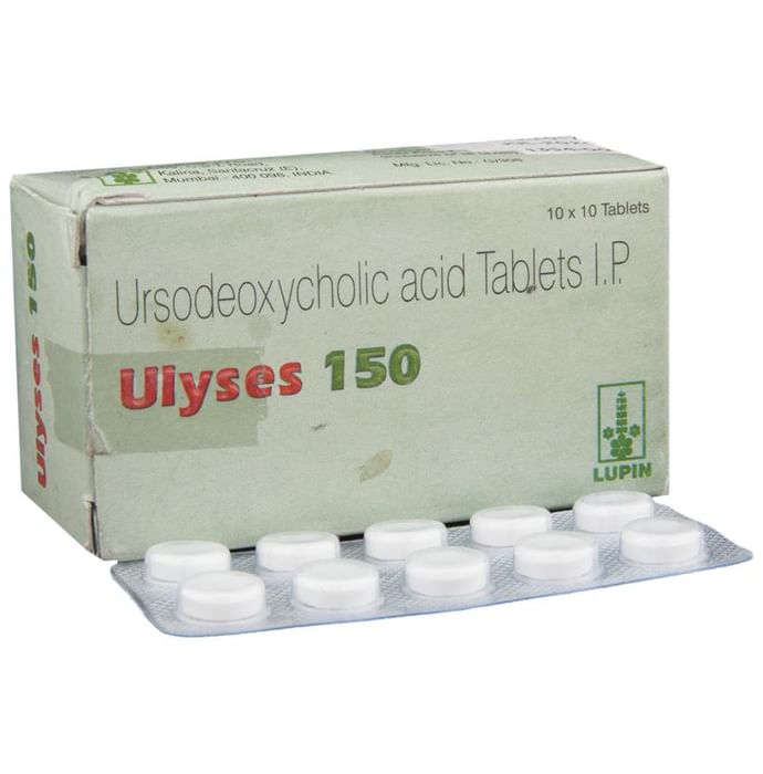 Ulyses 150 Tablet is used to dissolve certain gallstones and prevent them from forming. It is also used to treat a type of liver disease called primary biliary cirrhosis. It helps break down the cholesterol that has converted into stones in your gallbladder thereby dissolving the stones. Ulyses 150 Tablet should be swallowed whole after a meal and with a glass of milk or water. The dose will depend on what you are being treated for and your body weight. Take it regularly to get maximum benefit and keep taking it for as long as prescribed (several months or longer). Keep taking it even if your symptoms disappear. This medicine's most common side effects are abdominal pain, diarrhea, hair loss, itching, nausea, and rash. Not everyone gets these side effects. If you are worried about them, or they do not go away, let your doctor know. Before taking this medicine, you should tell your doctor if you have an inflammation of the gallbladder or bile ducts, you get frequent cramp-like pain in your upper abdomen, you have been coughing up blood or you have gained weight rapidly. Using this medicine can reduce or increase the effect of some other medicines so tell your doctor all other medicines you are taking. Women should discontinue hormonal birth control pills as they can increase the production of gallstones. During the treatment, you may need ultrasound scans, or frequent blood tests to check your liver function.