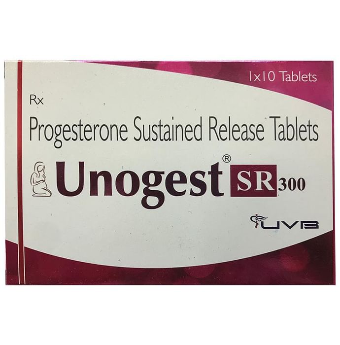 Unogest SR 300 Tablet is a natural female sex hormone, progesterone. It is used to treat menstrual and pregnancy-related issues that are caused due to hormonal imbalance. Unogest SR 300 Tablet is also prescribed along with estrogen as a part of hormonal replacement therapy for preventing endometrial hyperplasia (thickening of the lining of the uterus). It should be taken with food. It should be taken at the same time each day to get the most benefit. You should continue taking it for as long as your doctor has told you to, even if you feel well. The most common side effects include abdominal bloating, abdominal pain, dizziness, headache, depression, breast tenderness, hot flushes, vaginal discharge, joint paint, and urinary incontinence. Side effects are more common during the first few weeks and usually lessen as your body gets used to the medicine. You may also experience bleeding or spotting between your periods, consult with your doctor if it happens frequently. Before taking this medicine, inform your doctor if you have, or have had, breast cancer, unusual bleeding in the vagina, or liver disease. You will probably have several tests both before and during treatment to check your womb. Also, tell your doctor what other medicines you are taking as some may affect, or be affected by, this medicine. In general, it is advisable to avoid alcohol and smoking.