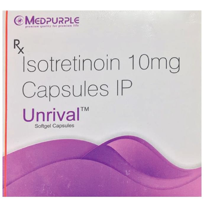 Unrival Softgel Capsule belongs to a group of medicines called retinoids (vitamin A derivative). It is used to treat severe acne that has not responded to other treatments. Unrival Softgel Capsule should be used in the dose and duration as advised by your doctor. Take it with food, preferably at the same time each day to avoid a missed dose. It may take several weeks for your symptoms to improve but keep taking the medicine regularly to get the most benefit. If you notice no improvement after a few weeks, see your doctor again. The most common side effects include dry skin, rash, and increased liver enzymes. They are not usually serious and often disappear after getting used to the medicine but if they bother you or do not go away, tell your doctor. Unrival Softgel Capsule may make you more sensitive to sunlight so you should limit your exposure to the sun. It may also make your skin more fragile. Avoid any waxing (hair removal), or laser treatments during treatment. Additionally, it may cause dryness of the mouth, lips, and eyes so drink plenty of water and use a moisturizer. This medicine may lead to birth defects, do consult your doctor if you are pregnant or planning pregnancy.