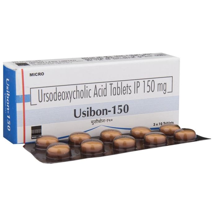 Usibon 150 Tablet is used to dissolve certain gallstones and prevent them from forming. It is also used to treat a type of liver disease called primary biliary cirrhosis. It helps break down the cholesterol that has converted into stones in your gallbladder thereby dissolving the stones. Usibon 150 Tablet should be swallowed whole after a meal and with a glass of milk or water. The dose will depend on what you are being treated for and your body weight. Take it regularly to get maximum benefit and keep taking it for as long as prescribed (several months or longer). Keep taking it even if your symptoms disappear. This medicine's most common side effects are abdominal pain, diarrhea, hair loss, itching, nausea, and rash. Not everyone gets these side effects. If you are worried about them, or they do not go away, let your doctor know. Before taking this medicine, you should tell your doctor if you have an inflammation of the gallbladder or bile ducts, you get frequent cramp-like pain in your upper abdomen, you have been coughing up blood or you have gained weight rapidly. Using this medicine can reduce or increase the effect of some other medicines so tell your doctor all other medicines you are taking. Women should discontinue hormonal birth control pills as they can increase the production of gallstones. During the treatment, you may need ultrasound scans, or frequent blood tests to check your liver function.