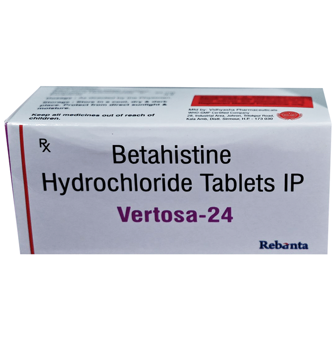 Vertosa 24 Tablet is used to prevent and treat a disorder of the inner ear known as Ménière’s disease. The symptoms include dizziness (vertigo), ringing in the ears (tinnitus), and loss of hearing, probably caused by fluid in the ear. This medicine helps relieve the symptoms by reducing the amount of fluid. Vertosa 24 Tablet should be swallowed whole with water and taken at the same time(s) each day to get the most benefit. Your doctor will decide what is the correct dose to relieve your symptoms and how often you need to take it. You may need to take this medicine for several months and you should take it for as long as prescribed by your doctor, even if you start feeling better. The most common side effects include headache, feeling sick, and indigestion (dyspepsia). You may also get stomach pain and bloating. Taking the medicine with food can help reduce stomach problems. Before taking this medicine, you should talk to your doctor if you have a stomach ulcer, asthma, or high or low blood pressure. You must also tell him/her what other medicines you are taking, to make sure you are safe. Also speak to your doctor if you are pregnant, trying to become pregnant, or breastfeeding.