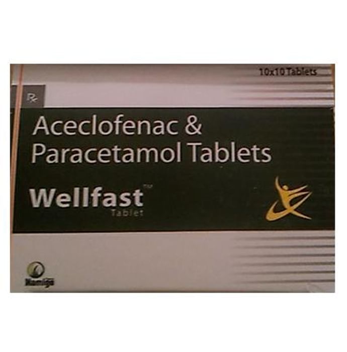 Wellfast Tablet is a pain-relieving medicine. It is used to reduce pain and inflammation in conditions like rheumatoid arthritis, ankylosing spondylitis, and osteoarthritis. It may also be used to relieve muscle pain, back pain, toothache, or pain in the ear and throat. Wellfast Tablet should be taken with or without food. You should take it regularly as advised by your doctor. Your doctor may change the dose and time between doses according to your pain level and your needs. Do not take more or use it for a longer duration than recommended by your doctor. Some of the common side effects of this medicine include nausea, vomiting, stomach pain, loss of appetite, heartburn, and diarrhea. If any of these side effects bother you or do not go away with time, you should let your doctor know. Your doctor may help you with ways to reduce or prevent these side effects by prescribing an alternative medicine or adjusting the dose. The medicine may not be suitable for everybody. Before taking it, let your doctor know if you have any problems with your heart, kidneys, liver, or have stomach ulcers. To make sure it is safe for you, let your doctor know about all the other medicines you are taking. Pregnant and breastfeeding mothers should first consult their doctors before using this medicine.