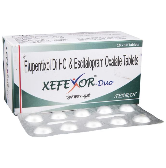 XeFexor-Duo Tablet is a combination of two medicines used in the treatment of schizophrenia, a mental disorder that can result in hallucinations or delusions. It alters the thoughts and elevates the mood, improving the person’s ability to think, feel and behave. XeFexor-Duo Tablet may be taken with or without food, preferably at the same time each day. Take it at the same time each day as this helps to maintain a consistent level of medicine in the body. Take this medicine in the dose and duration as advised by your doctor and if you have missed a dose, take it as soon as you remember it. Do not skip any doses and finish the full course of treatment even if you feel better. It is important that this medication is not stopped suddenly without talking to your doctor as it may worsen your symptoms. Some common side effects of this medicine include dry mouth, vomiting, stomach upset, delayed ejaculation, sedation, urinary retention, low sexual desire, muscle rigidity, restlessness and tremors. Initially, this medicine may cause a sudden drop in blood pressure when you change positions, rise slowly if you have been sitting or lying down. However, these are temporary and usually resolve on their own. Please consult your doctor if these do not subside or bother you. It may also cause dizziness and sleepiness, do not drive or do anything that requires mental focus until you know how this medicine affects you. Inform your doctor if you experience any abnormal movements, particularly of the face, lips, jaw, and tongue while taking this medicine. Your doctor may advise for regular monitoring of blood sugar and cholesterol levels. Additionally, avoid drinking alcohol while taking this medicine as it can make drowsiness worse. This medicine can also lead to weight gain, eat a healthy balanced diet, avoid snacking with high-calorie food, and exercise regularly.