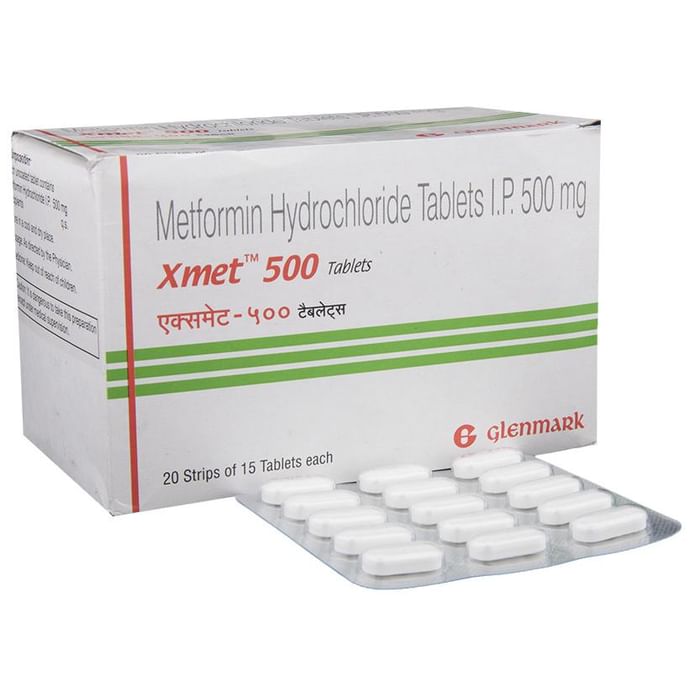Xmet 500 Tablet is a medicine used to treat type 2 diabetes mellitus. It helps control blood sugar levels and thus prevent serious complications of diabetes. It is also used to treat a menstruation-related disorder known as Polycystic ovary syndrome (PCOS) in women. Xmet 500 Tablet is best taken with food to avoid nausea and abdominal pain. You should take it regularly, at the same time each day, to get the most benefit. You should not stop taking this medicine unless your doctor recommends it. Your lifestyle plays a big part in controlling diabetes. Therefore, it is important to stay on the diet and exercise program recommended by your doctor while taking this medicine. The most common side effects of this medicine include nausea, vomiting, taste change, diarrhea, abdominal pain, and loss of appetite. Some people may develop hypoglycemia (low blood sugar level) when this medicine is taken along with other antidiabetic medicines, alcohol, or upon skipping a meal. Monitor your blood sugar levels regularly while taking it. Before taking this medicine, inform your doctor if you have any kidney, liver, or heart problems. Pregnant or breastfeeding women should also consult their doctor before taking it. Your doctor will check your kidney function tests before starting treatment with it. Avoid excessive alcohol intake while taking it as this may increase the risk of developing some side effects.