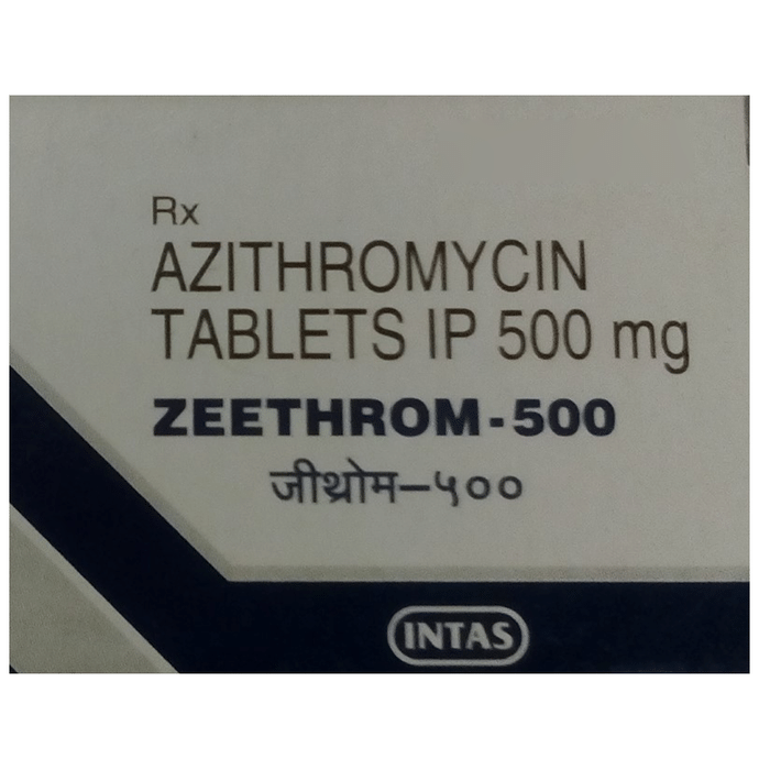 Zeethrom 500 Tablet is an antibiotic used to treat various types of bacterial infections of the respiratory tract, ear, nose, throat, lungs, skin, and eye in adults and children. It is also effective in typhoid fever and some sexually transmitted diseases like gonorrhea. Zeethrom 500 Tablet is taken orally, preferably one hour before or 2 hours after a meal. It should be used regularly at evenly spaced time intervals as prescribed by your doctor. Do not skip any doses and finish the full course of treatment even if you feel better. Stopping the medicine too early may lead to the return or worsening of the infection. Commonly seen side effects seen with this medicine include vomiting, nausea, stomach pain, and diarrhea. These are usually temporary and subside with the completion of treatment. Consult your doctor if you find these side effects worry you or persist for a longer duration. Inform your doctor if you have any previous history of allergy or heart problems before taking this medicine. Pregnant or breastfeeding women should consult their doctor before using this medicine.