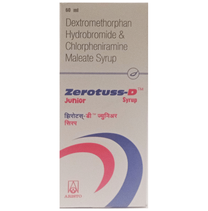Zerotuss-D Junior Syrup is a combination medicine used in the treatment of dry cough. It works by reducing the activity of cough center in the brain. It relieves allergic symptoms like runny nose, watery eyes, sneezing, throat irritation. Zerotuss-D Junior Syrup is taken with or without food in a dose and duration as advised by the doctor. The dose you are given will depend on your condition and how you respond to the medicine. You should keep taking this medicine for as long as your doctor recommends. If you stop treatment too early your symptoms may come back and your condition may worsen. Let your doctor know about all other medications you are taking as some may affect, or be affected by this medicine. The most common side effects are nausea, upset stomach, and rash. Most of these are temporary and usually resolve with time. Contact your doctor straight away if you are at all concerned about any of these side effects. This medicine may also cause dizziness and sleepiness, so do not drive or do anything that requires mental focus until you know how this medicine affects you. Avoid drinking alcohol while taking this medicine as it can make dizziness worse. It is beneficial to have plenty of fluids while taking this medication. Before taking it, you should tell your doctor if you have liver diseases so that your doctor can prescribe a suitable dose for you. Pregnant or breastfeeding women should also consult their doctor before taking this medicine.