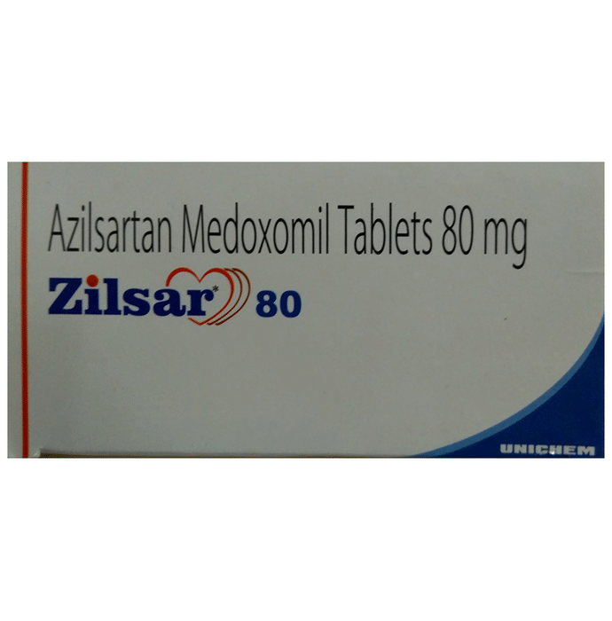 Zilsar 80 Tablet is a medicine used to treat high blood pressure and heart failure. Lowering blood pressure helps to prevent future heart attack and stroke. This medicine is also effective in preserving kidney function in patients with diabetes. Zilsar 80 Tablet can be prescribed either alone or in combination with other medicines. It may be taken with or without food during the day or at night. However, try to take it at the same time each day to get the most benefit. It is important to continue taking it regularly even if you feel well or if your blood pressure is controlled. Most people with high blood pressure do not feel ill, but if you stop taking this medicine, your condition could get worse. This is a widely used medicine and is considered safe for long-term use. Making some changes in your lifestyle will also help lower your blood pressure. These may include regular exercise, losing weight, smoking cessation, reducing alcohol intake, and reducing the amount of salt in your diet as advised by your doctor. This medicine is tolerated well by most patients and has few side effects. Dizziness, particularly after the first dose, is known to occur in some people. This may be associated with headache. Let your doctor know if these side effects bother you or do not go away. No weight gain has been seen with the regular use of this medicine. Before taking this medicine, let your doctor know if you have any kidney or liver problems. Pregnant or breastfeeding mothers should also consult their doctor before taking it. Your doctor may check your kidney function, blood pressure, and potassium levels in your blood at regular intervals while you are taking this medicine.