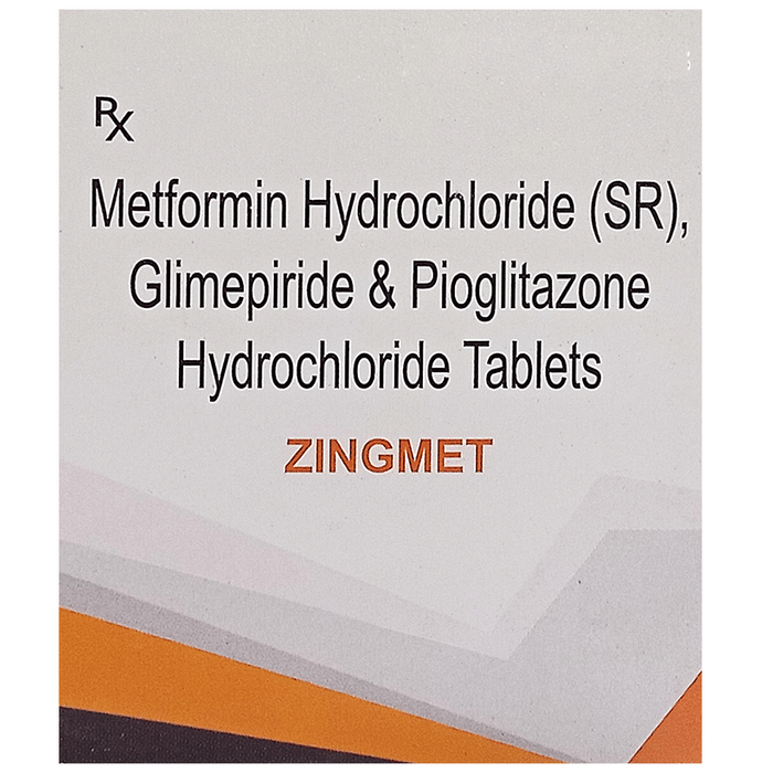 Zingmet Tablet SR is a combination medicine that helps control blood sugar levels. This medicine is used together with diet and exercise to improve blood sugar control in adults with type 2 diabetes mellitus. It helps in proper utilisation of insulin, thereby lowering the blood sugar levels. Zingmet Tablet SR should be taken in the dose and duration as advised by your doctor. It must be taken with food to avoid stomach upset. If you miss a dose, take it as soon as possible. However, if it is almost time for your next dose, skip the missed dose and go back to your regular schedule. Do not double the dose. Overdose may lead to low blood sugar (hypoglycemia). Some people may develop hypoglycemia (low blood sugar level) when this medicine is taken along with other antidiabetic medicines, alcohol or upon skipping a meal. Monitor your blood sugar levels regularly while taking it. Other common side effects of this medicine include nausea, taste changes, diarrhea, stomach pain, headache, edema (swelling), blurred vision, bone fracture, and respiratory tract infection. Before taking this medicine, inform your doctor if you have any kidney, liver or heart problems. Pregnant or breastfeeding women should also consult their doctor before taking it. Your doctor will check your kidney function tests before starting treatment with it. Avoid excessive alcohol intake while taking it as this may increase the risk of developing some side effects.
