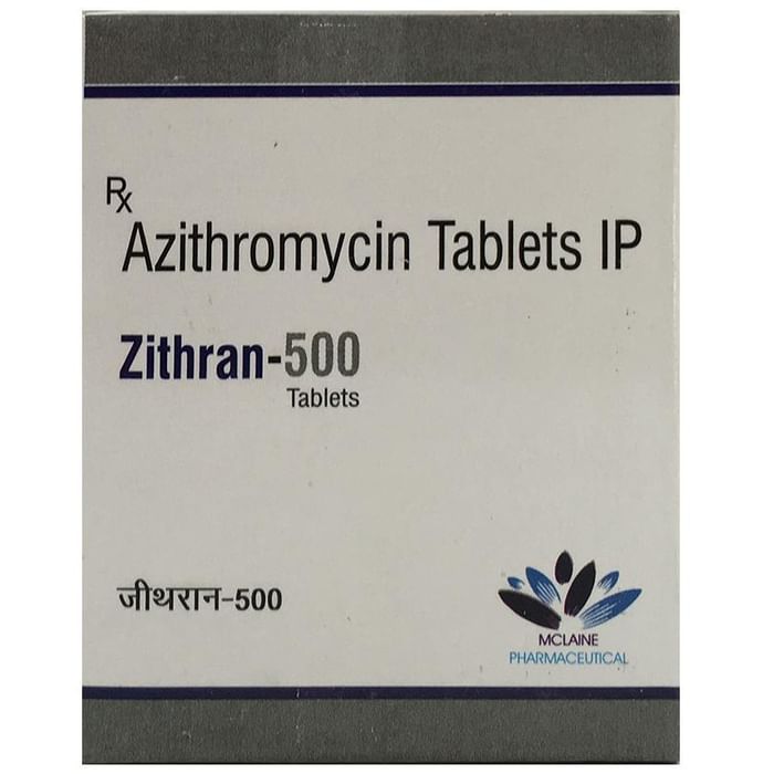 Zithran 500 Tablet is an antibiotic used to treat various types of bacterial infections of the respiratory tract, ear, nose, throat, lungs, skin, and eye in adults and children. It is also effective in typhoid fever and some sexually transmitted diseases like gonorrhea. Zithran 500 Tablet is taken orally, preferably one hour before or 2 hours after a meal. It should be used regularly at evenly spaced time intervals as prescribed by your doctor. Do not skip any doses and finish the full course of treatment even if you feel better. Stopping the medicine too early may lead to the return or worsening of the infection. Commonly seen side effects seen with this medicine include vomiting, nausea, stomach pain, and diarrhea. These are usually temporary and subside with the completion of treatment. Consult your doctor if you find these side effects worry you or persist for a longer duration. Inform your doctor if you have any previous history of allergy or heart problems before taking this medicine. Pregnant or breastfeeding women should consult their doctor before using this medicine.