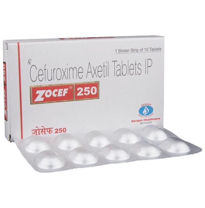 Zocef 250 Tablet is an antibiotic medicine used to treat bacterial infections in your body. It is effective in infections of the lungs (e.g., pneumonia), ear, throat, nasal sinus, urinary tract, skin, soft tissues, bones, and joints. It is also used to prevent infections during surgery. Zocef 250 Tablet should be taken with food to avoid an upset stomach. You should take it regularly at evenly spaced intervals as per the schedule prescribed by your doctor. Taking it at the same time every day will help you to remember to take it. The dose will depend on what you are being treated for, but you should always complete a full course of this antibiotic as prescribed by your doctor. Do not stop taking it until you have finished, even when you feel better. If you stop taking it early, some bacteria may survive and the infection may come back. It will not work for viral infections such as flu or the common cold. Using any antibiotic when you do not need it can make it less effective for future infections. The most common side effects of this medicine include rash, vomiting, increased liver enzymes, nausea, and diarrhea. These are usually mild but let your doctor know if they bother you or last more than a few days. Before using it, you should tell your doctor if you are allergic to any antibiotics or have any kidney or liver problems. You should also let your doctor know all other medicines you are taking as they may affect, or be affected by this medicine. Pregnant and breastfeeding mothers should consult their doctor before using it.