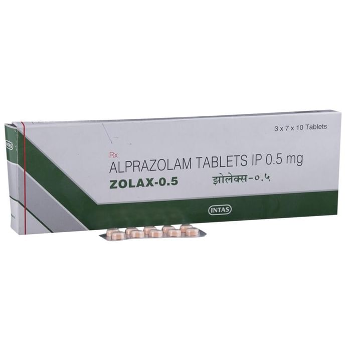 Zolax 0.5 Tablet belongs to a class of medicines known as benzodiazepines. It is used to treat anxiety. It alters brain activity, calms it, and provides relief from panic attacks by relaxing the nerves. Zolax 0.5 Tablet may be taken with or without food. However, it is advised to take it at the same time each day as this helps to maintain a consistent level of medicine in the body. Take this medicine in the dose and duration as advised by your doctor as it has a high potential of habit-forming. If you have missed a dose, take it as soon as you remember it and finish the full course of treatment even if you feel better. This medication mustn't be stopped suddenly without talking to the doctor as it may cause nausea and anxiety. The most common side effect of this medicine is lightheadedness. It may cause dizziness and sleepiness, so do not drive or do anything that requires mental focus until you know how this medicine affects you. It may also cause weight gain or weight loss as it can vary from person to person. To prevent weight gain you can eat a healthy balanced diet, avoid snacking with high-calorie foods, and exercise regularly. Weight loss can be managed by increasing food portions and consulting a dietitian. If you have been taking this medicine for a long time then regular monitoring of blood and liver functions may be required.