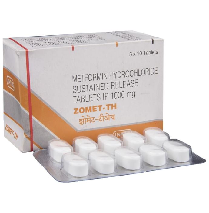Zomet-TH Tablet SR is a medicine used to treat type 2 diabetes mellitus. It helps control blood sugar levels and thus prevent serious complications of diabetes. It is also used to treat a menstruation-related disorder known as Polycystic ovary syndrome (PCOS) in women. Zomet-TH Tablet SR is best taken with food to avoid nausea and abdominal pain. You should take it regularly, at the same time each day, to get the most benefit. You should not stop taking this medicine unless your doctor recommends it. Your lifestyle plays a big part in controlling diabetes. Therefore, it is important to stay on the diet and exercise program recommended by your doctor while taking this medicine. The most common side effects of this medicine include nausea, vomiting, taste change, diarrhea, abdominal pain, and loss of appetite. Some people may develop hypoglycemia (low blood sugar level) when this medicine is taken along with other antidiabetic medicines, alcohol, or upon skipping a meal. Monitor your blood sugar levels regularly while taking it. Before taking this medicine, inform your doctor if you have any kidney, liver, or heart problems. Pregnant or breastfeeding women should also consult their doctor before taking it. Your doctor will check your kidney function tests before starting treatment with it. Avoid excessive alcohol intake while taking it as this may increase the risk of developing some side effects.