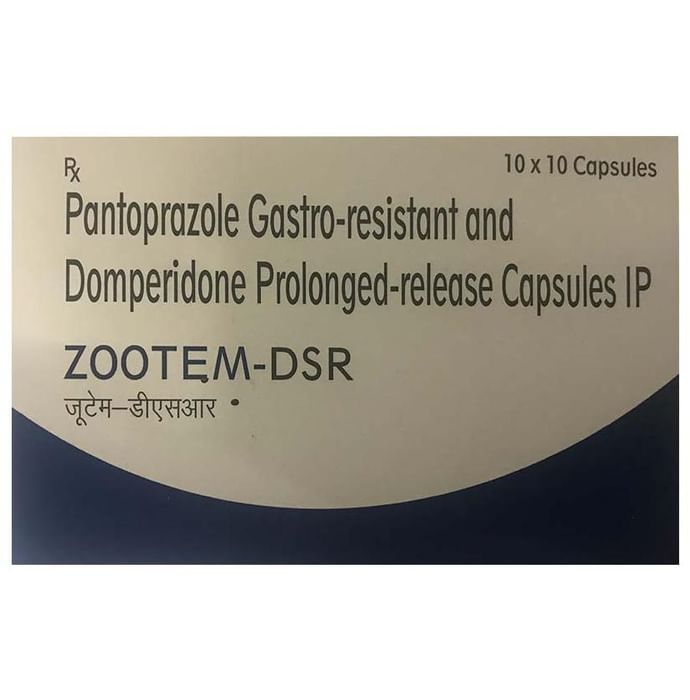 Zootem-DSR Capsule is a prescription medicine used to treat gastroesophageal reflux disease (Acid reflux) and peptic ulcer disease by relieving the symptoms of acidity such as indigestion, heartburn, stomach pain, or irritation. Zootem-DSR Capsule also neutralizes the acid in the stomach and promotes easy passage of gas to reduce stomach discomfort. It is taken without food in a dose and duration as advised by the doctor. The dose you are given will depend on your condition and how you respond to the medicine. You should keep taking this medicine for as long as your doctor recommends. If you stop treatment too early your symptoms may come back and your condition may worsen. Let your healthcare team know about all other medications you are taking as some may affect, or be affected by this medicine. The most common side effects are diarrhea, stomach pain, flatulence, dryness in the mouth, and headache. Most of these are temporary and usually resolve with time. Contact your doctor straight away if you are at all concerned about any of these side effects. This medicine may cause dizziness and sleepiness, so do not drive or do anything that requires mental focus until you know how this medicine affects you. Avoid drinking alcohol while taking this medicine as it can worsen your sleepiness. Lifestyle modifications like having cold milk and avoiding hot tea, coffee, spicy food, or chocolate can help you to get better results. Before you start taking this medicine it is important to inform your doctor if you are suffering from kidney or liver disease. You should also tell your doctor if you are pregnant, planning pregnancy, or breastfeeding.
