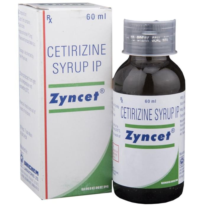 In Treatment of Allergic conditions Zyncet Syrup provides relief from symptoms such as blocked or runny nose, sneezing, and itchy or watery eyes. This will make it easier for you to go about your daily activities. It can also give relief from allergic reactions after insect bites and symptoms of hives and eczema such as rash, swelling, itching, and irritation. This will improve the appearance of your skin and you may find that your mood and self-confidence improve as well. It rarely has any serious side effects and you may only need to take it on days you have symptoms. If you are taking it to prevent getting symptoms you should use it regularly to get the most benefit.