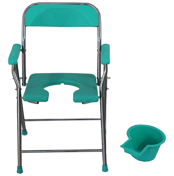 Fidelis Commode Chair U Shape with Plastic Arm & Pot Universal Silver Green