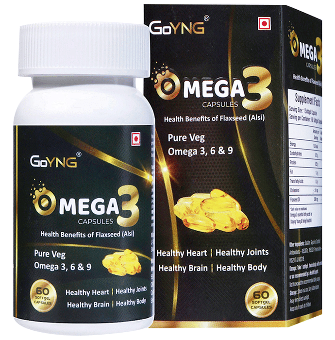 GoYNG Omega 3 Soft Gel Capsule GoYNG Omega 3 Soft Gel Capsule can boost heart health, skin, brain and more. GoYNG is a veg source of omega3 without burp and fish smell. GoYNG plant-sourced omega3, omega6 and omega nine soft gels are sourced from flax seeds and other plant sources and are suitable for vegan. The extract can provide youthful skin by restoring skin elasticity. It is safe and suitable for healthy eyes, heart and organ functioning. It is CMIRD approved, ISO, HACCP, and GMP certified. It does not contain chemicals and is sugar-free.