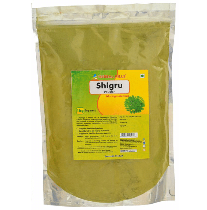 Herbal Hills Shigru Powder Herbal Hills Shigru Powder is enriched with Moringa which has high nutritious value. It is enriched with anti-oxidants and vitamins. It has anti-inflammatory properties and also helps in reducing the blood sugar level. It also has aphrodisiac properties and aids in promoting sexual wellness and fertility. It helps in improving overall health and wellness.