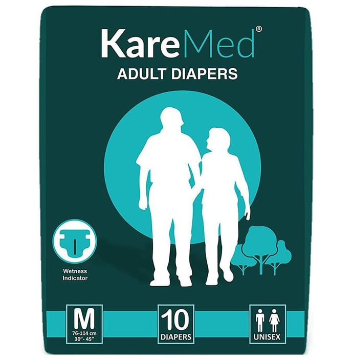 Kare-Med Adult Diaper Medium is useful for both men and women who are unable to walk or have mobility problems. It is made from a soft cotton sheet that does not cause any rashes and provides a soft and comfortable feel. It has a very absorbent gel core that aids in swiftly locking liquids in place, and its leg cuffs prevent leaks. It also features resealable tapes to ensure that diapers fit properly without causing pain to the user. It is available in medium, large, XL and L-XL sizes. | Uses: Kare-Med Adult Diaper Medium is useful for adults and patients who suffer from mobility disorders. | Product Specification and Features: Kare-Med Adult Diaper is beneficial for both men and women who are unable to walk or suffer from mobility issues It is made from a soft cotton sheet that does not cause any rashes and provides a soft and comfortable feel It contains a super absorbent gel core that aids in locking fluid quickly and its leg cuffs ensure protection against leakage It also has refastenable tapes that allow the diaper to fit properly without causing any discomfort to the wearer | Directions For Use: Use as directed on the label or as advised by the physician. | Safety Information: Read the label carefully before use Store in a cool and dry place away from direct sunlight Keep out of reach of children