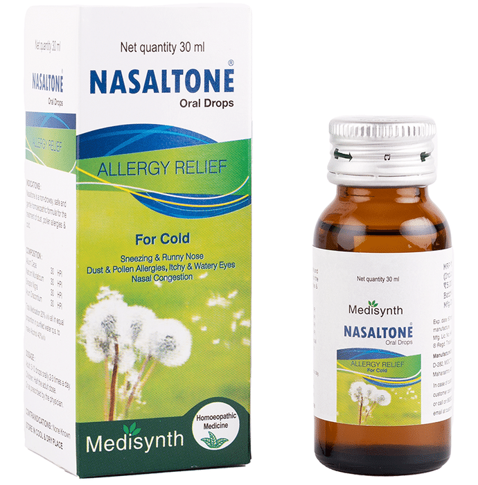 Medisynth Nasaltone Oral Drop Medisynth Nasaltone Oral Drop is effective for the treatment of allergy, cold and flu, runny nose and sneezing, nasal congestion, fever, headache, sore throat, pollen and dust allergy, itchy and watery eyes.