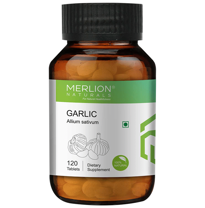 Merlion Naturals Garlic 500mg Tablet Merlion Naturals Garlic Tablet Garlic grows in many parts of the world and is a popular ingredient in cooking due to its strong smell and delicious taste. However, throughout ancient history, the primary use of garlic was for its health and medicinal properties. It is rich in Sulphur compounds that attribute to its various health benefits. Merlion Natural's Garlic Tablets is made from pure garlic powder. The product is processed at FSSAI, Halal and ISO Certified processing facilities and then packed in food-grade consumer packs under a hygienic environment. At Merlion Natural's we ensure that only fresh batches of products are packed.