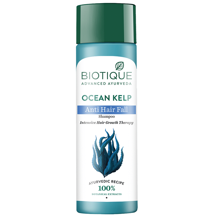 Biotique Ocean Kelp Anti Hair Fall Shampoo Intensive Hair Growth Therapy Biotique Bio Kelp Protein Shampoo for Falling Hair is a nourishing shampoo is a blend of pure Kelp, natural proteins, Peppermint Oil and Mint leaf extract to gently cleanse hair and scalp for fresh growth and healthier shine.