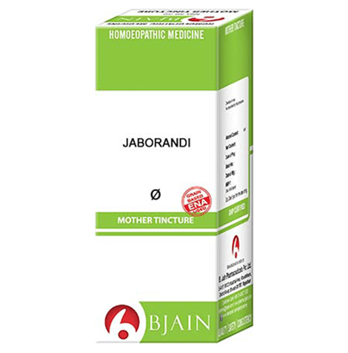 Bjain Jaborandi Mother Tincture is primarily used to treat hair fall and premature greying of hair. Jaborandi is a natural hair tonic which helps in strengthening hair follicles and prevents hair fall and baldness. Jaborandi is also used to treat conditions of perspiration, stomach disorder such as diarrhoea and related issues. | Key Ingredients: Jaborandi | Key Benefits: It is used for the treatment of hair fall and its associated conditions Strengthens hair follicles and prevents hair fall Jaborandi has natural sedative properties and is helpful in correcting sleeping disorders It is also used in treating problems related to thyroid and goitre Treats conditions of drowsiness due to stoppage of perspiration and salivation and the secreted parts become excessively dry Based on homoeopathic composition, it safe to use and has no side effects | Directions For Use: Take 10 drops of Bjain Jaborandi Mother Tincture diluted with half cup of water thrice a day or as directed by the physician. | Safety Information: Read the label carefully before use Do not exceed the recommended dose Keep out of the reach of children Use under medical supervision Store in a cool dry place away from direct sunlight and heat