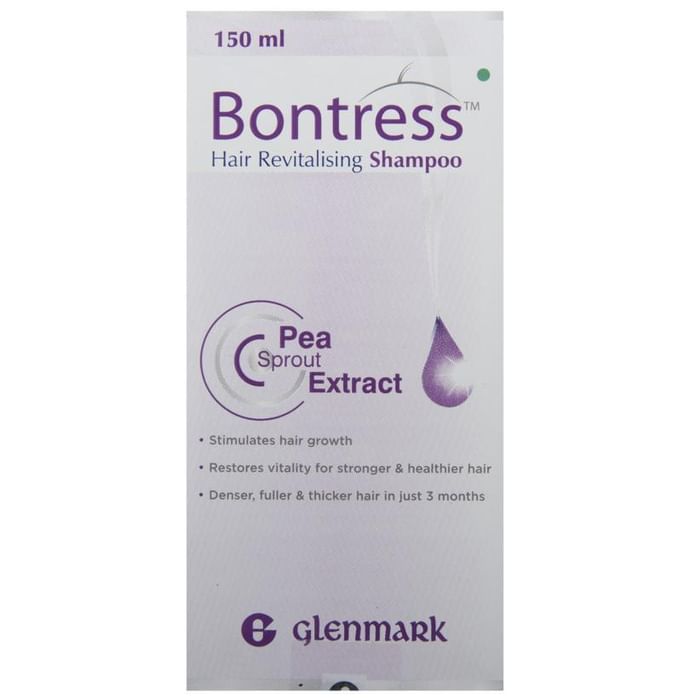 Bontress Hair Revitalising Shampoo Hair loss, also known as alopecia or baldness, refers to a loss of hair from the head or body. Baldness can refer to general hair loss or male pattern hair loss. Hair loss and hypotrichosis have many causes including androgenetic alopecia, fungal infection, trauma (e.g., due to (trichotillomania ), radiotherapy, chemotherapy, nutritional deficiencies (e.g., iron deficiency ), and autoimmune diseases (e.g., alopecia areata ). Bontress Hair Revitalising Shampoo is an anagain enriched shampoo that is used as a supportive therapy to control hair loss. | Key Ingredients: Pisum Sativam Sprout Extract, Phenoxyethanol, Sodium Benzoate, Wheat Amino Acids, SoyAmino Acids, Arginine, Hydrochloride, Serine, Vitamin B3, Tocopheryl Acetate, Threonine | Key Benefits: Bontress Hair Revitalising Shampoo re-enforces and strengthens hair fibres Bontress Hair Revitalising Shampoo maintains the protein balance in the hair It stimulates and promotes hair growth and helps maintain the original density thickness of the hair Bontress Hair Revitalising Shampoo reduces sebum secretion and energises the hair roots | Good To Know: Paraben-free | Best Suited For: Hair loss relief | Directions For Use: Take a small amount of shampoo into the palm of your hand Apply it to the scalp and massage until it lathers Work the shampoo through the hair Rinse your hair and scalp thoroughly with warm water | Safety Information: Read the label carefully before use Keep it away from the reach of children Store it in a cool and dry place away from direct sunlight