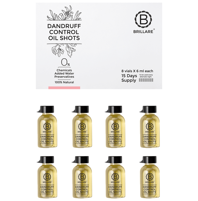Brillare Dandruff Control Oil Shots (6ml Each) Brillare Dandruff Control Oil Shots (6ml Each) is a blend of oils with purifying herbs to deal with dandruff prone hair and scalp. The active ingredients in this oil blend purify the hair and make the scalp residue-free.