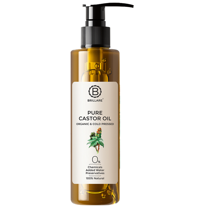 Brillare Pure Castor Oil is known to have anti-inflammatory, antimicrobial, and moisturising properties that may help to get stronger hair and eyelashes, and help repair and nourish damaged skin. This oil is 100% organic and cold-pressed. | Key Ingredients: Castor oil | Key Benefits: It is rich in vitamin E that can help reduce hair fall It may strengthen the hair roots and help achieve thicker hair and eyelashes It aids in nail growth and strength | Directions For Use: Pump out a sufficient quantity of oil on palm and massage gently on hair/skin/scalp for 3 to 5 minutes to ensure complete absorption | Safety Information: Best before 36 months Read the label carefully before use Store in a cool and dry place Keep out of reach of children