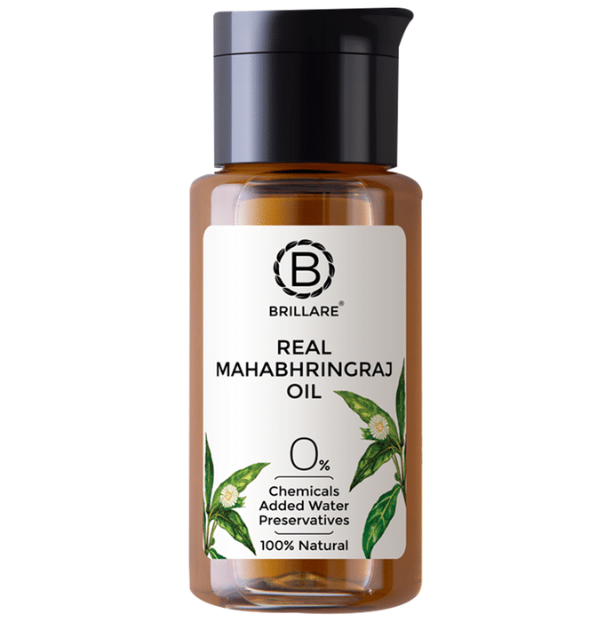 Brillare Real Mahabhringraj Oil is a blend of natural traditional oils that can treat hair conditions like hair loss, dandruff, and dry hair. It can help strengthen the hair from within and gives thicker and fuller-looking hair. It may help in keeping the scalp healthy and flake-free. | Key Ingredients: Mahabhringraj oil Castor oil Onion oil Cedarwood oil | Key Benefits: Mahabhringraj oil can help reduce hair fall and dandruff and prevent premature greying Castor oil may fight hair fall and strengthen hair and eyelashes Onion oil contains sulphur which can help strengthen hair roots and prevent hair fall Cedarwood oil aids in naturally exfoliating the scalp and making it itch-free It can prevent the early greying of hair | Directions For Use: Take a sufficient quantity of oil on the palm and apply it to the hair and scalp Massage with gentle hands focusing on the scalp for 3 to 5 minutes to ensure complete absorption Use at night or an hour before shampoo for best results, 2 to 3 times a week | Safety Information: Best before 36 months In case of contact with eyes, rinse immediately Read the label carefully before use Store in a cool and dry place Keep out of reach of children
