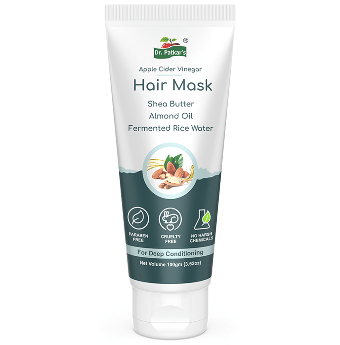 Dr. Patkar's Apple Cider Vinegar Hair Mask for Deep Conditioning Get hassle-free and salon-like hair care in the convenience and comfort of your own home with an ACV hair mask. This unique apple cider vinegar hair mask contains fermented rice water with its unique strength and protective qualities. Shea butter film coating the hair shaft can reduce split ends and improve hair appearance and combability. It can reduce split ends and improve hair appearance, retain moisture and improve combability, prevent and repair hair cuticle damage, and reduce the frizziness in hair. It is suitable for all hair types. Almond oil can nourish the hair roots and promote hair growth. Apple cider vinegar is a secret ingredient that might reduce itchy scalp and conditions it. It’s curated with extra care as it doesn’t contain harsh chemicals like sulphate or paraben. Every individual matters to us, and that’s why this shampoo is not tested on animals and is cruelty-free in nature. | Key Ingredients: ACV Almond oil Shea butter Fermented rice water | Key Benefits: ACV can help reduce itchy scalp and prevent dandruff Almond oil can help moisturise hair and improve elasticity Shea butter can soften hair and reduce split ends Fermented rice water can promote the growth of new hair and deeply nourish the hairs | Directions For Use: Shampoo and towel dry hair Apply the hair mask from the roots to the tip Finger combs the strands and emulsifies through the hair to permit it to enter the shafts Massage scalp delicately Let it sit for 10-15 min Rinse thoroughly with warm water Do one more wash with cold water for settlement of cuticles, moisture lock, and upgrade sparkle Use once a week | Safety Information: Read the label carefully before use Store in a cool and dry place, away from sunlight Keep out of reach of children