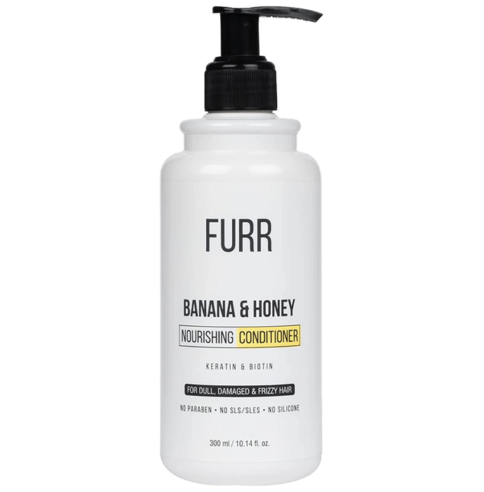 Furr Banana & Honey Nourishing Hair Conditioner Furr Banana & Honey Nourishing Hair Conditioner is formulated for dull, damaged, and frizzy hair. It is enriched with keratin and biotin, which nourish the hair, restore its shine, repair damage, and reduce frizz. It has the fragrance of banana mixed with honey.