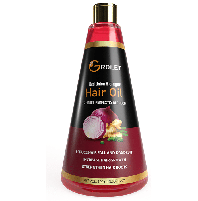 Grolet Red Onion & Ginger Hair Oil Grolet Red Onion & Ginger Hair Oil is made of natural hair care herbs that maximise hair growth. Effectively nourishes the scalp and makes damaged hair smooth and healthy from the roots. Enriched with antioxidants and essential hair care herbs, it manages major hair care problems like dandruff, hair fall, and more. In combination with redensyl, onion oil reduces hair fall and promotes the growth of lost hair.