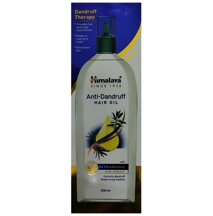 Himalaya Anti-Dandruff Hair Oil Himalaya Anti-dandruff hair oil contains goodness of Tea Tree Oil and Rosemary. The Tea Tree Oil has anti-fungal properties that enables it to effectively combat dandruff. It moisturizes hair and keeps the scalp free of fungal infections. It strengthens hair and protects the scalp from infections. The Rosemary extracts are effective in treatment of dandruff, prevents premature balding, strengthens hair follicles, and make hair stronger.