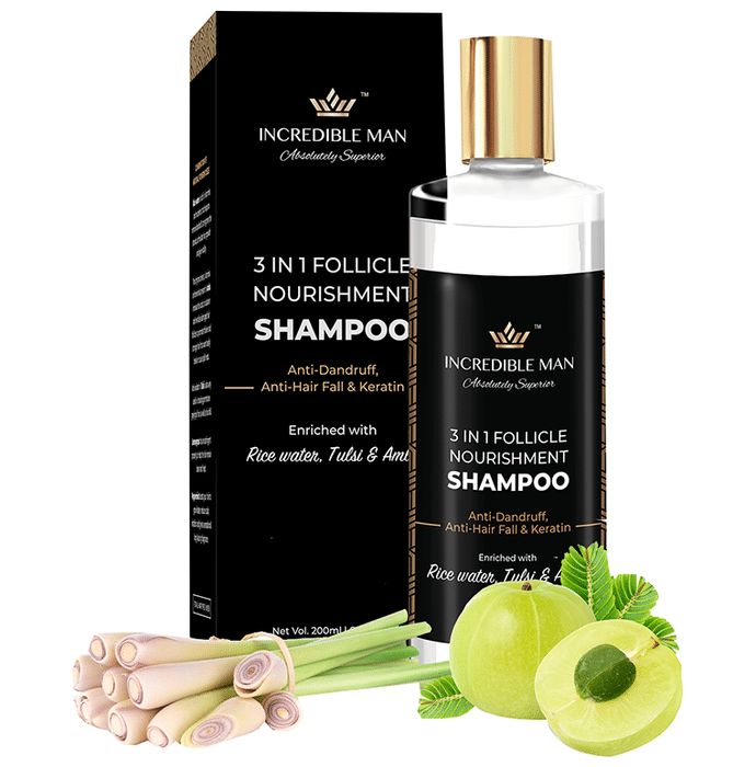 Incredible Man 3 in 1 Follicle Nourishment Shampoo Incredible Man 3 in 1 Follicle Nourishment Shampoo provides nourishment to the scalp, making the hair less prone to breaking or falling, helping to keep hair healthy and protected. The shampoo provides nourishment from the root level, controls hair fall and makes hair look stronger and healthier.