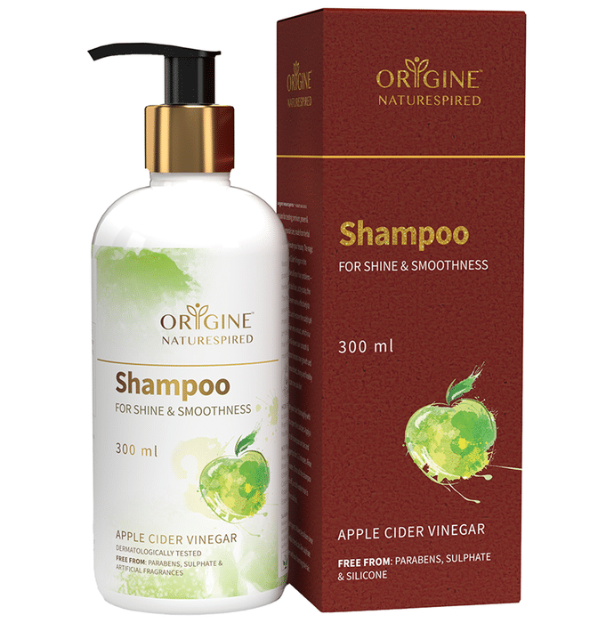 Origine Naturespired Shampoo for Shine and Smoothness is enriched with aloe vera extracts and apple cider vinegar to naturally boost the smoothness and softness of hair. This natural shampoo is crafted using nutritional ingredients picked from nature to control the pH balance of the scalp. This shampoo is made from 100% vegan, chemical-free and cruelty-free ingredients to provide rich nourishment to the hair and the scalp. This shampoo can easily solve every hair and scalp concern to reduce breakage and damage issues effortlessly. Also, the herbal contents present in the shampoo will lock moisture and make your hair feel softer and silkier without any worry of side effects. As an added benefit, it is free of parabens, silicones and sulphates. | Key Ingredients: Apple cider vinegar Aloe vera extracts | Key Benefits: It helps reduce dryness and flakiness of the scalp It helps lock in moisture and keeps the hair hydrated It helps improve the hair texture and smoothness It brings out a radiant and lustrous glow It helps the hair rejuvenate and regenerate It leaves the hair silky soft and healthy It helps balance the pH balance of the scalp | Directions For Use: Use as directed on the label. | Safety Information: Read the label carefully before use Keep out of reach of the children Store in a cool dry place