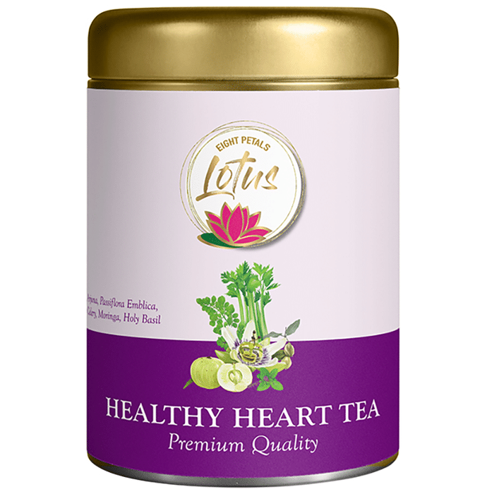 Eight Petals Lotus Healthy Heart Tea Leaves is a potent antioxidant, which builds the body's immunity and has anticarcinogenic properties. This tea has a relaxing, calming and toning effect on the heart. With its natural antioxidant properties, it overcomes bad cholesterol. | Key Ingredients: Arjuna Passiflora emblica Celery Moringa Holy basil | Key Benefits: It may help reduce body hair and acne It enhances your health It helps to enhance the immunity level of the body It helps to provide energy to the body | Directions For Use: Read the label carefully before use | Safety Information: Do not exceed the recommended dosage Store in a cool and dry place away from direct sunlight Keep out of reach of children