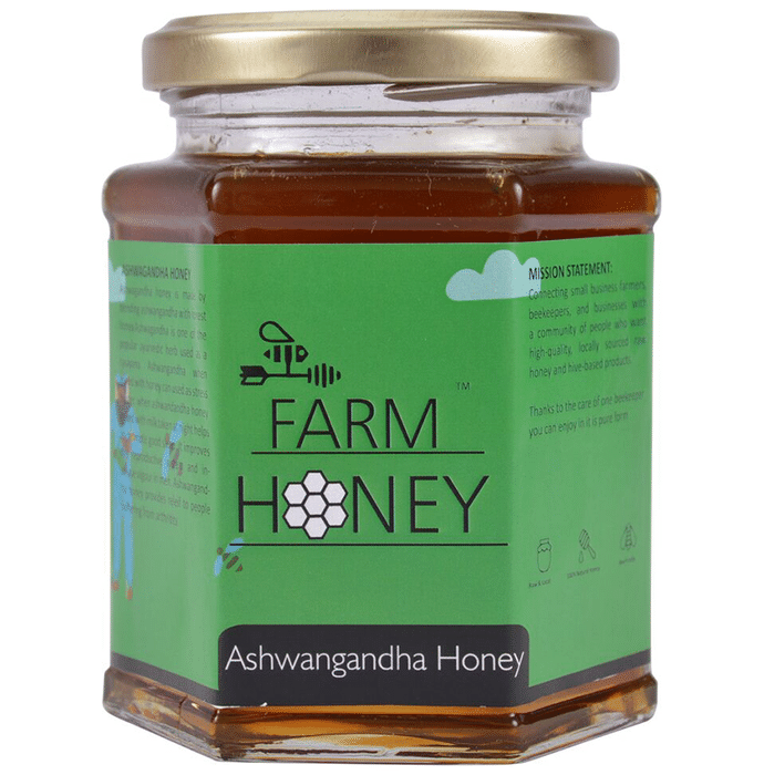 Farm Honey's Ashwagandha Farm Honey's is a natural raw honey which is collected directly from the beehive and has multiple health benefits. Raw Honey is considered most original as it is pure, unprocessed, and unpasteurized and does not contain any preservative. This 100% natural and organic honey is free from any artificial colours and sweeteners.