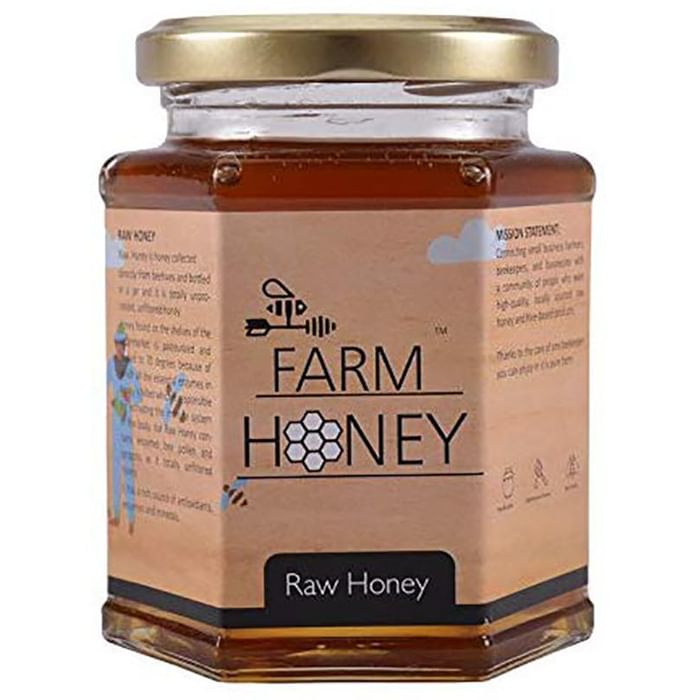 Farm Honey's is a natural raw honey which is collected directly from the beehive and has multiple health benefits. Raw Honey is considered most original as it is pure, unprocessed, and unpasteurized and does not contain any preservative. This 100% natural and organic honey is free from any artificial colours and sweeteners. | Key Ingredients: Fructose Glucose Dextrin Sucrose Minerals | Key Benefits: It is helpful for those who want to lose weight Counters allergies along with the power of boosting immune system It is a known natural energy booster it helps in healing wounds and ulcers It helps in improving digestion and overall appetite It helps in controlling the blood sugar levels It is helpful in taking care of skin and scalp conditions | Directions For Use: Best to drink it with warm water on an empty stomach for weight management Replace your sugar with honey to get maximum benefits | Safety Information: Read the label carefully before use Keep away from the children Close the lid properly after use Store in a room that is cool, dry and away from sunlight Do not referigerate