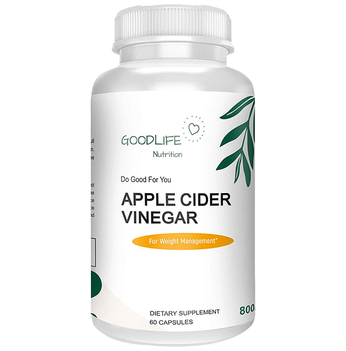 Goodlife Nutrition Apple Cider Vinegar Capsule Goodlife Nutrition Apple Cider Vinegar Capsule is a 100% vegetarian product that helps to release toxins from the body. Goodlife Nutrition Apple Cider Vinegar tablets are made from fermenting the sugars in apples and changing them into acetic acid. Acetic acid has a strong odour and a tangy taste. Goodlife Nutrition Apple Cider Vinegar capsules have been prepared from raw, unfiltered and unpasteurised apple cider vinegar for easy consumption. It is enriched with antioxidants, vitamins and minerals and provides multiple health benefits.