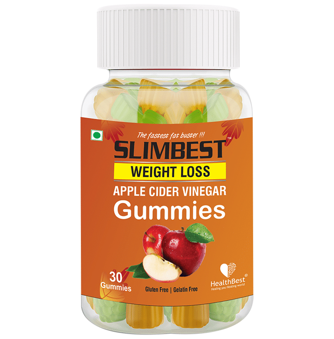HealthBest Slimbest Weight Loss Apple Cider Vinegar Gummies are dietary supplements that may be taken on the move. They are delightful to eat since they have a nice strawberry flavour. It is high in critical vitamins and minerals, making it ideal for city dwellers seeking health and wellness. It also aids in the attainment of one's weight goals and the resolution of digestive issues. | Key Ingredients: Apple cider vinegar Beet root extract Key Benefits: This healthy and delicious chewable boosts the digestive process It aids in improving the metabolic activity of the body Apple cider vinegar helps in improving heart health and blood pressure It offers health benefits such as aiding weight loss, reducing cholesterol, lowering blood sugar levels and improving the symptoms of diabetes | Directions For Use: Read the label carefully before use. | Safety Information: Read the label carefully before use Do not exceed the recommended dosage Store in a cool and dry place away from direct sunlight Keep out of reach of children