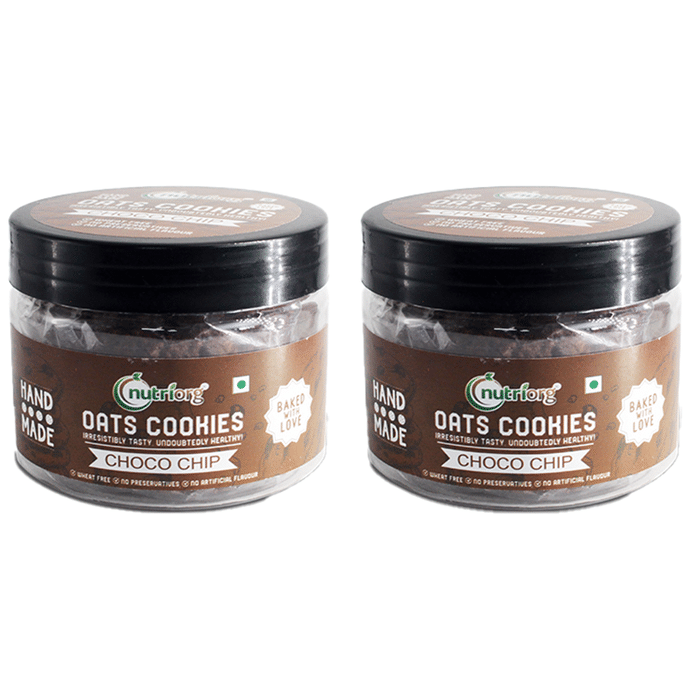 Nutriorg Oats Cookies (110gm Each) Choco Chips Nutriorg Oats Cookies (110gm Each) Choco Chips help one feel full for a longer duration, thus curbing hunger pangs. It does not contain maida and is free of GMOs and preservatives.