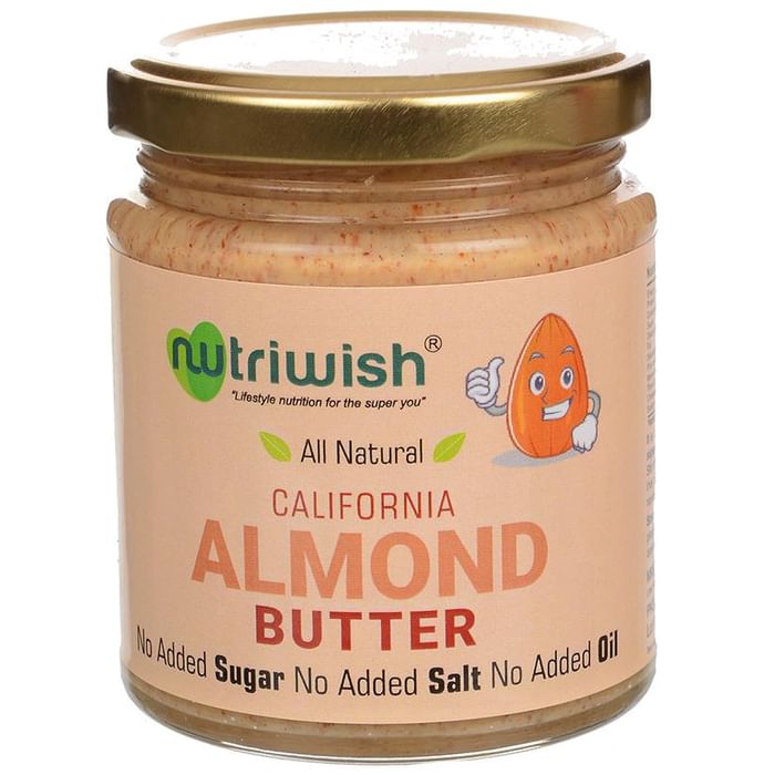 Nutriwish Almond Butter is a spreadable foodstuff made by grinding nuts into a paste. The result has a high fat content and can be spread like true butter, but is otherwise unrelated.. No added sugar. No Added salt. No Added Oil. Preferably refrigerate once opened. It is normal for pure nut butter to separate into solid and liquid. Stir the contents thoroughly and the consistence will return to normal. | Key Ingredients: California almond | Key Benefits: Contains generous amount of magnesium which boosts heart health by promoting blood flow, oxygen and nutrients Contains full of healthy flavonoids and Vitamin E Minerals such as manganese, copper as well as Vitamin B2 are present which are necessary for energy production Reduces the risk of heart diseases Good sources of monounsaturated fatty acids are present | Directions For Use: Use as a healthy spread in toast, pancakes or waffles. Almond butter can also be incorporated into smoothies and dipping sauces. | Safety Information: Read the label carefully before use Store in a cool dry place away from direct sunlight Keep out of reach of the children Consumers with food allergies should read the ingredients list carefully