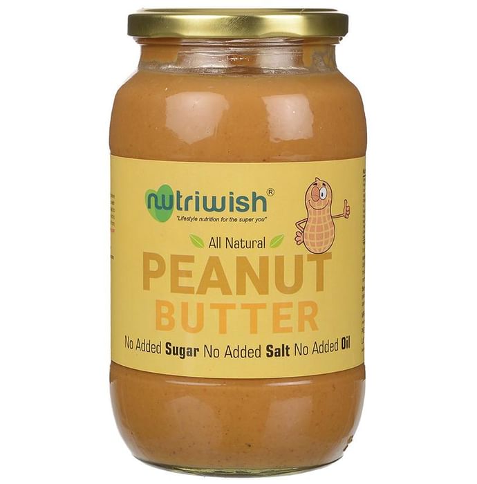 Nutriwish All Natural Peanut Butter Nutriwish100% Natural Peanut Butter is a spreadable foodstuff made by grinding nuts into a paste. The result has a high fat content and can be spread like true butter, but is otherwise unrelated.No added sugar. No Added salt. No Added Oil. Preferably refrigerate once opened. It is normal for pure nut butter to separate into solid and liquid. Stir the contents thoroughly and the consistence will return to normal. It helps to control hunger without leading to weight gain. Moderate levels of potassium and protein are present in peanut which lowers the risk of blood pressure.