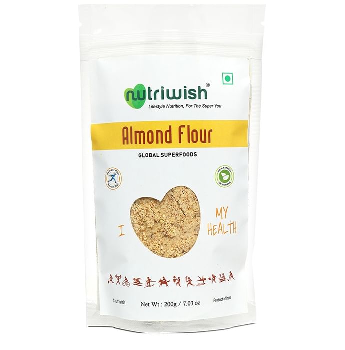 Nutriwish 100% Natural Almond powder is known to boost heart health which aids in managing blood sugar and also boosts energy levels and it is gluten-free source of vitamin E | Key Ingredients: Almond powder | Key Benefits: Known to boost heart health Aids in managing blood sugar Boosts energy levels Gluten-free source of vitamin E | Directions For Use: Use whole almond flour as gluten free substitute for bread crumbs or mix into any meal for an added nutrition and fiber boost. | Safety Information: Read the label carefully before use Store in a cool dry place away from direct sunlight Keep out of reach of the children Consumers with food allergies should read the ingredients list carefully