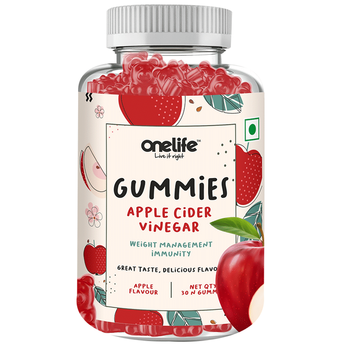 OneLife Apple Cider Vinegar Gummies Delicious is a health supplement that can help improve metabolism and reduce appetite. It can be beneficial for gut health and digestion and improve immunity. These gummies may aid in managing weight and blood sugar levels. Enjoy the gummies anywhere and anytime in a convenient way. | Key Ingredients: Apple cider vinegar Folic acid Beetroot extract Vitamin B12 Pomegranate extract | Key Benefits: Apple cider vinegar is useful for weight management Vitamin B12 is beneficial for enzymatic reactions and normal blood formation Pomegranate is rich in antioxidants that can protect the body It is a vegan and gelatin-free It contains no artificial flavour, soy, gluten, or lactose | Directions For Use: Take 1 gummy daily or as suggested by a healthcare professional | Safety Information: Read the label carefully before use This product is not intended to diagnose, prevent, treat or cure any disease The product should not be used as a substitute for a varied meal If you are taking any medication or planning any medical procedure, consult your doctor before use